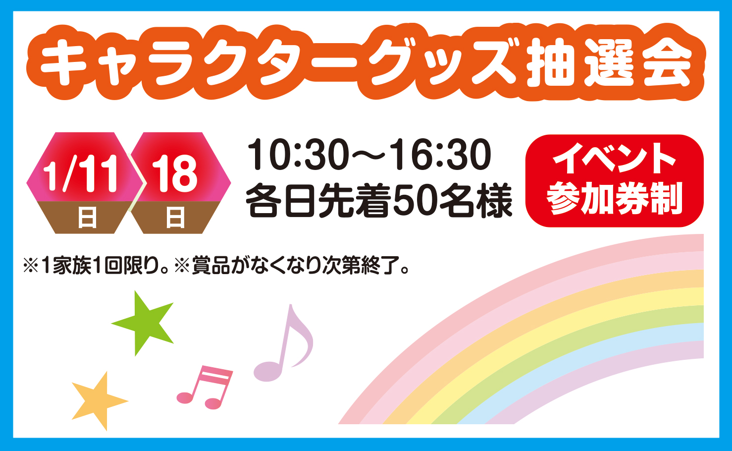 【2026年1月11日(日)・18日(日)】キャラクターグッズ抽選会